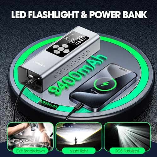![Cocosun Tire Inflator Portable Air Compressor, 2X Faster Inflation [9400mAh Battery & 12V DC Cord] Car Tire Pump with LCD Dual Display, 150PSI Electric Air Pump for Car SUV MPV RV Bike Ball,Grey - Image 5](https://m.media-amazon.com/images/I/51DPA3brTeL.jpg)