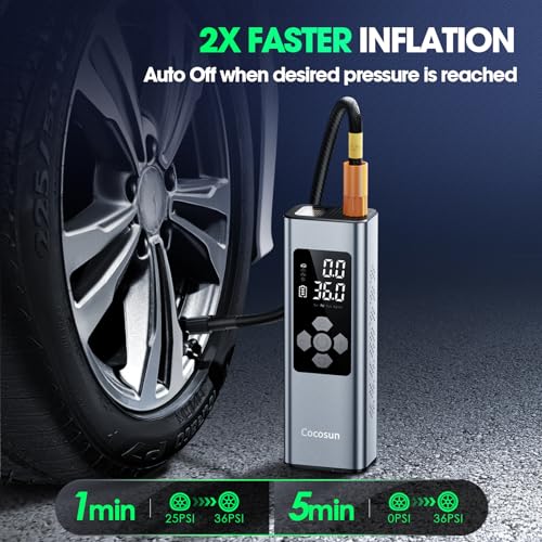 ![Cocosun Tire Inflator Portable Air Compressor, 2X Faster Inflation [9400mAh Battery & 12V DC Cord] Car Tire Pump with LCD Dual Display, 150PSI Electric Air Pump for Car SUV MPV RV Bike Ball,Grey - Image 3](https://m.media-amazon.com/images/I/51GzoKyvO2L.jpg)