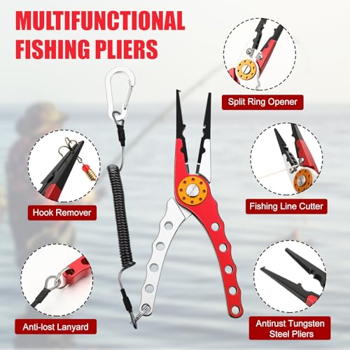 Multifunctional Pliers: tungsten steel pliers can handle various tasks, such as removing fishhook, clamping fishing line, cutting line, fixing split ring, etc. The spring of fishing pliers allows it to open automatically, and convenient for one hand using
