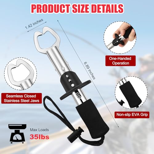 Fish Lip Griper: the fish griper has a strong grip and its weight capacity can be up to 66 pounds, which can easily control large fish; At meanwhile, the soft nonslip EVA grip and adjustable wrist strap prevent it from slipping and make it easy to carry