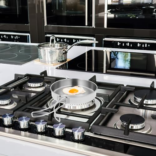 Material: camping cookware pan is made of stainless steel, resistant to high temperature and corrosion, and can be heated directly on an open flame