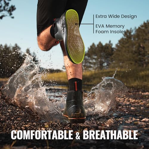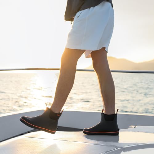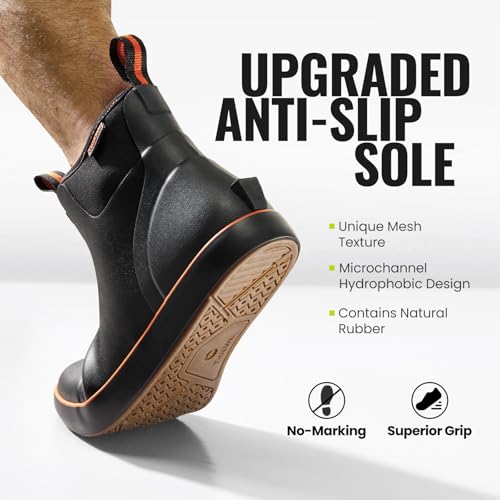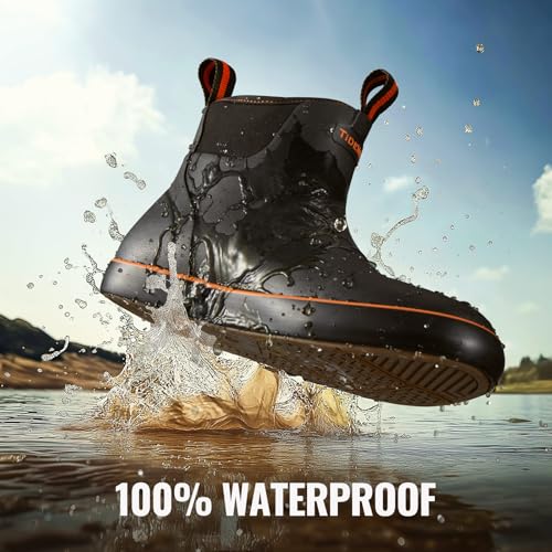 TIDEWE Deck Boots for Men, Waterproof Fishing Boots, Slip On Neoprene Rubber Ankle Rain Boots for Boating (Black Orange, Light Grey & Grey Brown, Size 7-14)